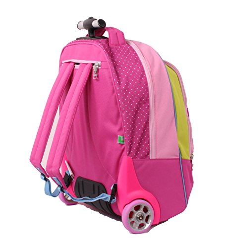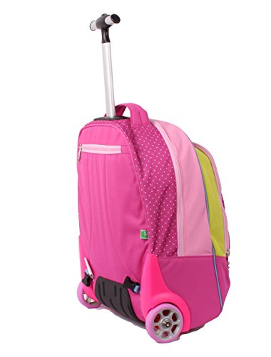 Altre caratteristiche: barra singola telescopica. Fondo rigido preformato e rinforzato. Ruote maxi. Spallacci a scomparsa totale nello schienale quando utilizzato come trolley