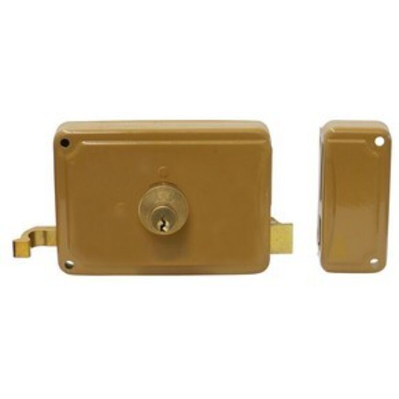 Serratura da applicare. 3 mandate e scrocco, doppio cilindro (esterno/interno), 3 chiavi, verniciata.