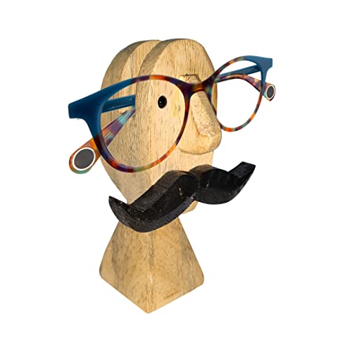 Faccia a mano in legno a forma di viso con baffi neri Supporto per occhiali Spec espositore per ufficio, scrivania/decorazione per la casa regali scopo occhiali fermo espositore