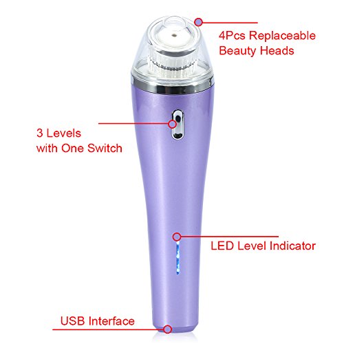 Facial Cleanser Poro Elettronico blackhead Remover con 4 Succhiare Testa Anti Acne Aspirato Neri pulizia del viso Bellezza Massaggi Facciali (Viola,)