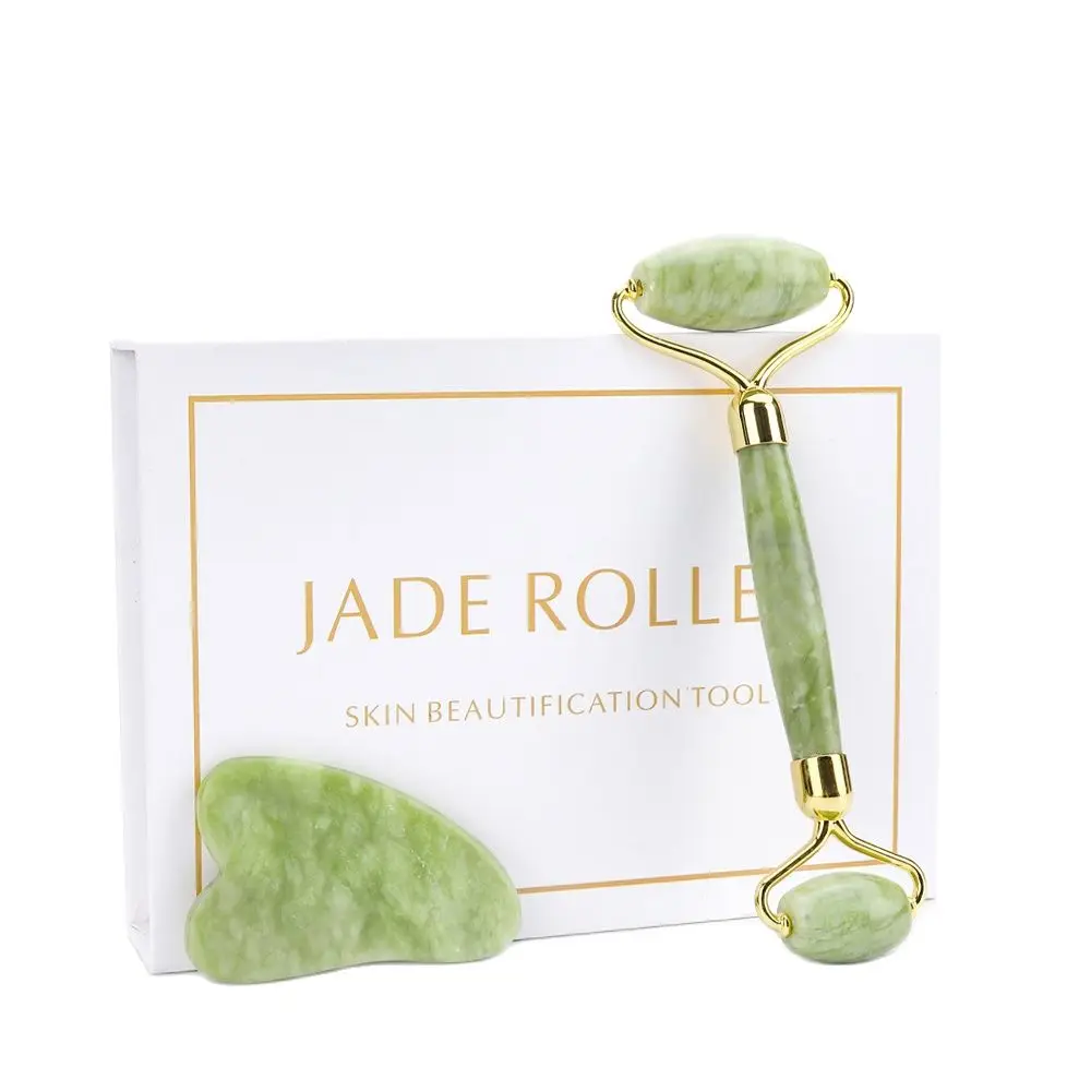 Jade Facial Eye Massage Roller Guasha Scraping Board Green Jade Stone Face Lift Body Slim Thin Lift Roller Tool
