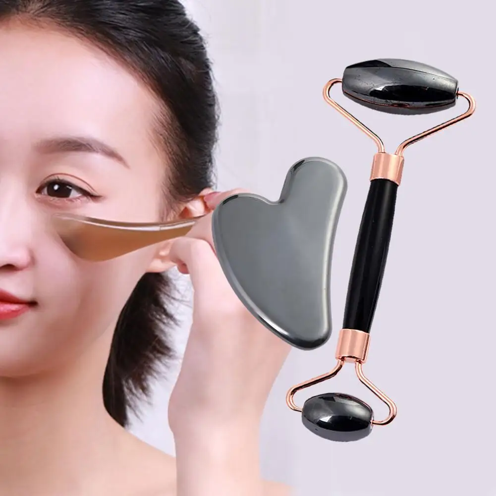50% Hot Sale Facial Massage Roller Shaping V Face Double Head Hematite Face Slimming Beauty Scraper for Skin