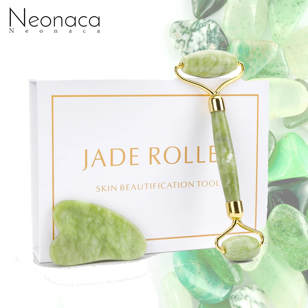 Facial Massage Roller Massage Tools Set Double Heads Jade Stone Guasha Scraping Board Anti Wrinkle Face-lift Tool With Gift Box