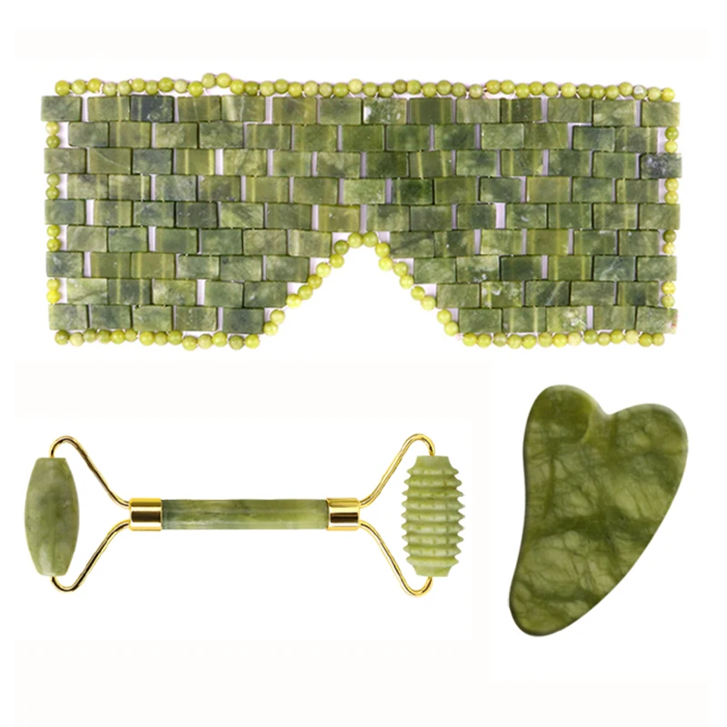Jade Eye Mask Facial Massager Natural Stone Gouache Scraper Jade Roller Gua Sha Set Face Massage Roller Guasha Board Beauty Care