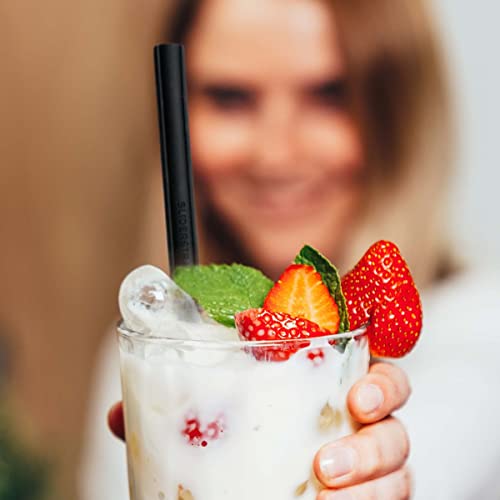 Contenuto della confezione: 10 cannucce di colore nero, in silicone, 15 x 1,3 x 0,8 cm, riutilizzabili e sostenibili, principio Open to Clean, lavabili in lavastoviglie, pulizia senza residui, progettate in Germania