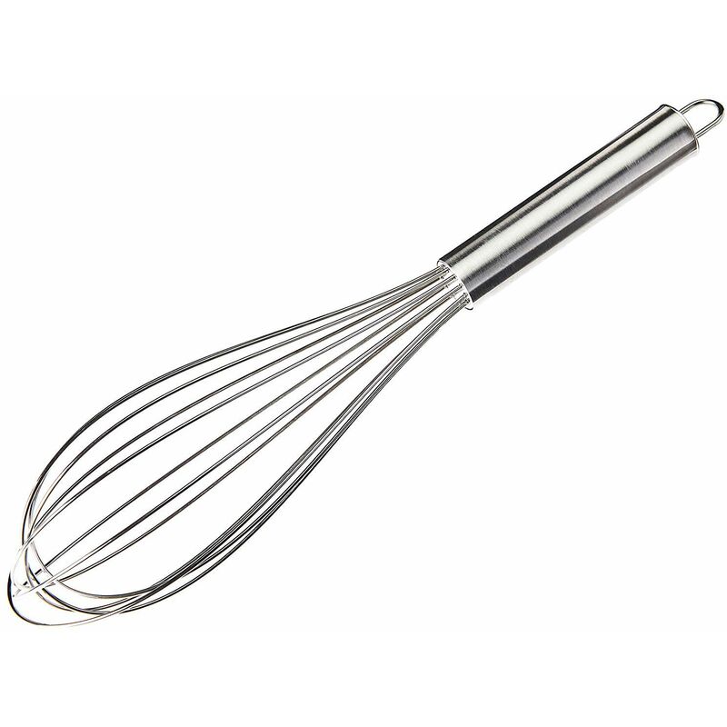 Descrizione Frusta, in acciaio inossidabile. Lunghezza: 28 cm. Con passante per appendere per riporlo facilmente. Lavabile in lavastoviglie.