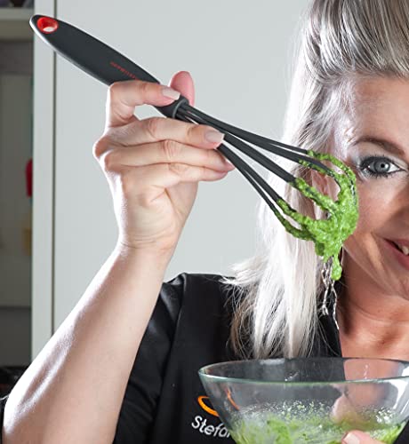 La forma allungata della frusta permette un utilizzo efficace e pratico. Straordinaria con le preparazioni fredde diventa praticissima ed utile per le preparazioni calde, essendo termoresistente!
