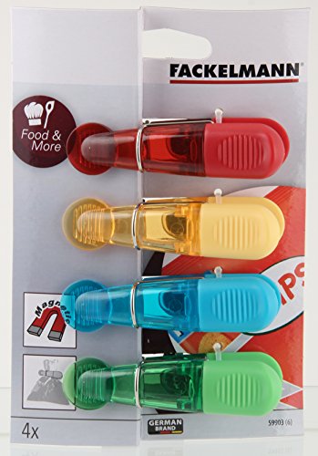 Fackelmann Set 4 Mollette Chiudi Sacchetti, Magnetiche, Plastica, Multicolore