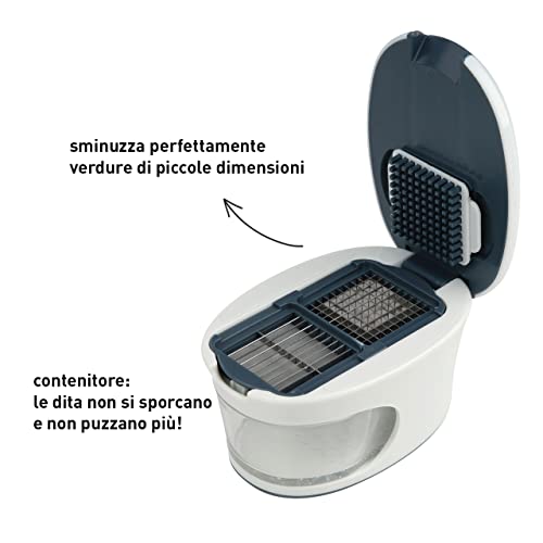 Fackelmann Taglia e sminuzza Aglio, Zenzero ECC. con 2 Lame Differenti, Linea Easy Prepare, affetta a cubetti o a fette, 11x7,5x6,5cm, Colore: Blu Scuro e Bianco