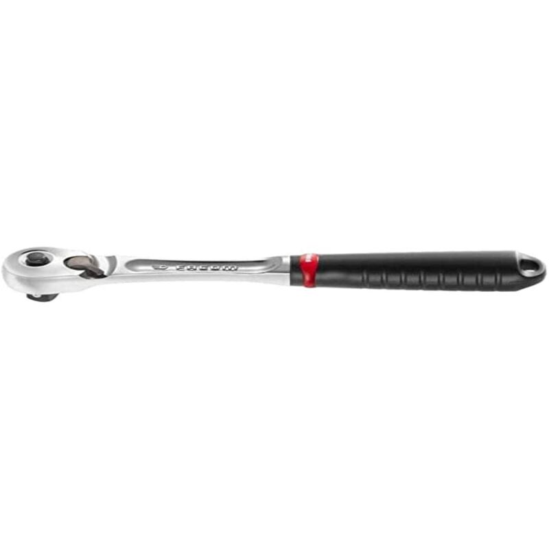 Blocco di sicurezza della nave = nessuna perdita di navi nelle macchine. Lunga durata senza manutenzione, indipendentemente dalle condizioni di lavoro. Resistente a polvere, fango industriale, ecc. Meccanismo a 72 denti per un recupero di 5° Investimento per leva permettendo la visualizzazione della direzione di rotazione. Sistema palmo permette di appoggiarsi sulla testa del cricchetto durante il (de)serraggio senza rischio di inversione accidentale della direzione di rotazione.Testa ultra compatta. Occhiello di fissaggio per lavorare in altezza. Comfort eccezionale.