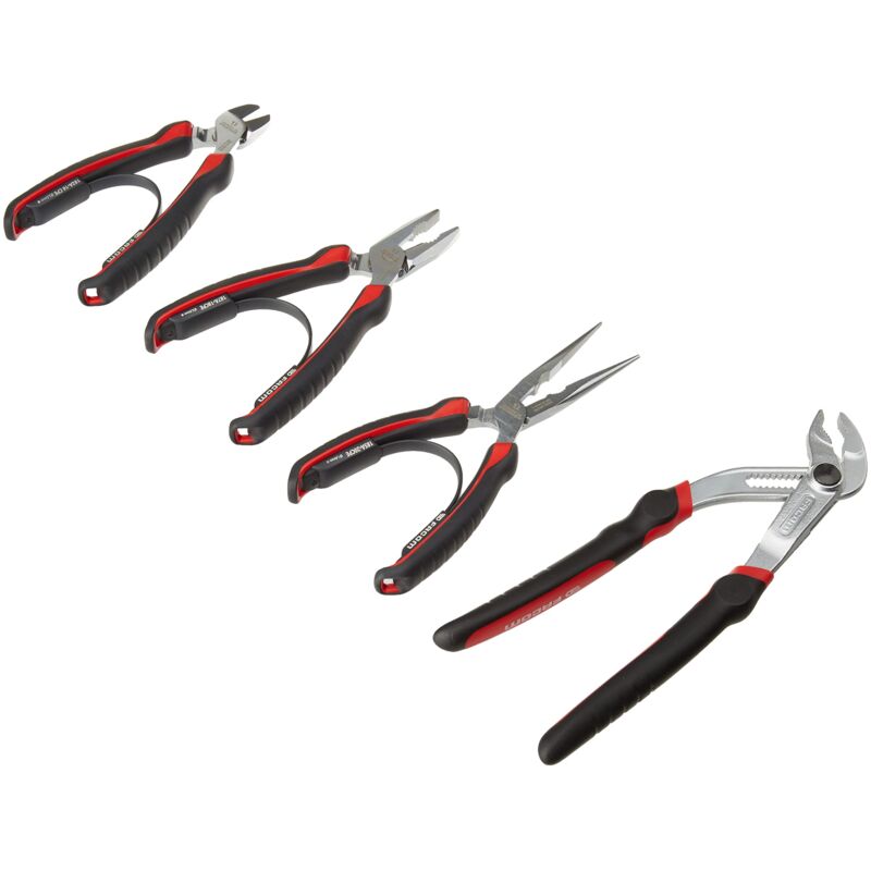 Set di 4 pinze CPE Facom. Composto da: 1 Pinza a blocco: 181 A.25CPE. 1 Tronchese diagonale: 192 a.16cpe. 1 pinza a becchi 1/2 tondi: 185 a.20cpe. 1 pinza universale: 187 a.18cpe. Fornito in scatola di cartone.