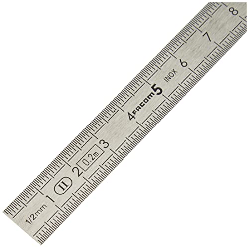 Facom - mod. DELA.1051.200 - Righello metrico, in acciaio inox a due lati, lunghezza: 200 mm