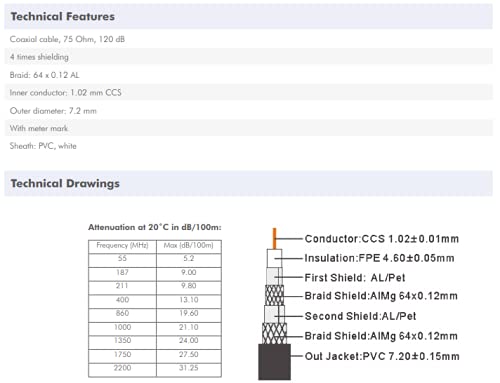 Schermatura: 120 dB. Impedenza: 75 Ohm