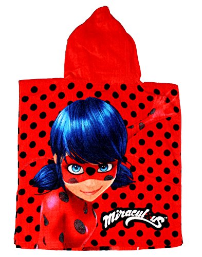 Factory 62001 Poncho Telo Mare in Cotone, 50 x 100 cm, 290 g, Motivo Lady Bug Miraculous