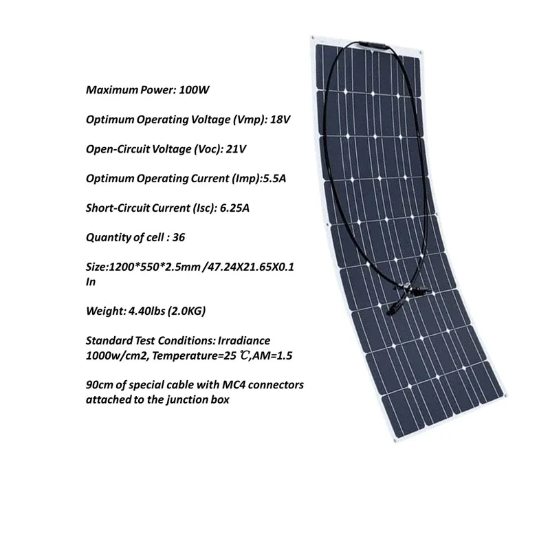 Factory Price 18V 100W Flexible Solar Panel 36pcs Solar Monocrystalline Cells Motorhomes Boats Roof 12V Battery Charger