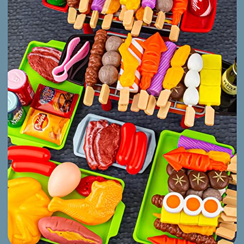 ❤ GIOCATTOLO ALIMENTARE REALISTICO: gli accessori per barbecue includono griglie, pinze, patatine e barattoli di spezie, hot dog e altro ancora. C'è anche un sacco di barbecue da infilzare con il cibo, che dà davvero ai bambini abilità pratiche.