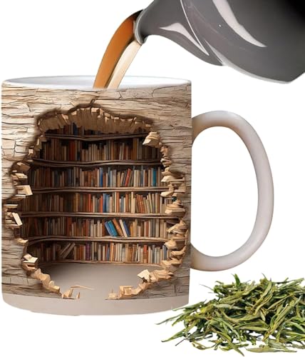 Fadaing Bookshelf Mug, tazza 3D per libreria, biblioteca, tazza multiuso con design creativo, tazza da caffè 3D, per gli amanti dei libri (1,1)