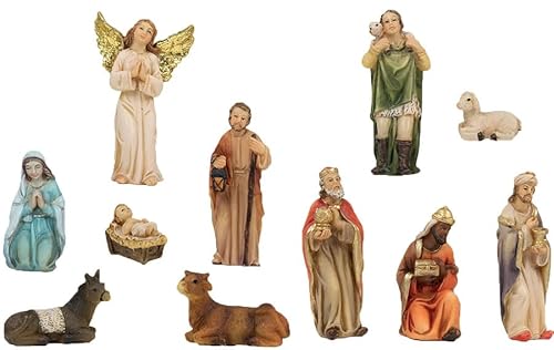 FADEDA Set di 11 statuette per presepe di Natale dipinte a mano, misura M/2,5 cm fino a 9 cm, 11 statuette fedeli ai dettagli, decorazione per tavolo di Natale