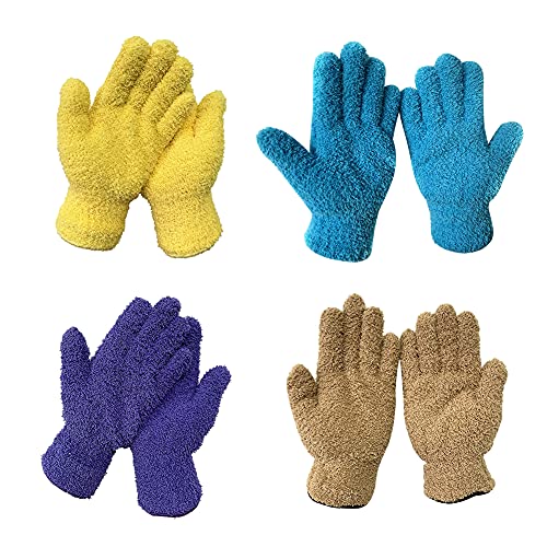 Faderr - Guanti in microfibra, 4 paia di guanti in microfibra, per spolverare auto, guanti per la pulizia della polvere, in microfibra riutilizzabili per uso domestico