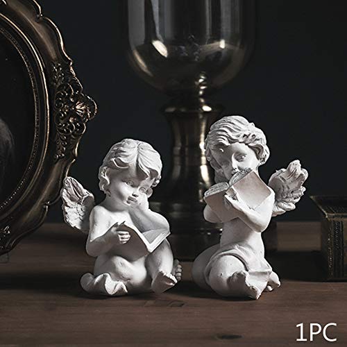 Faderr Statuetta di angelo a forma di ali di cherubino, statuetta in miniatura in resina, statua custode da giardino, decorazione commemorativa per la casa/festa/regalo (bianco/tipo A), taglia unica