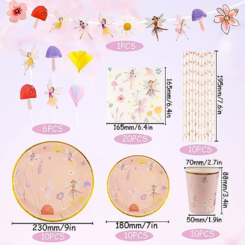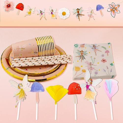 FAELNK Fata dei Fior Stoviglie per Feste Set Festa Compleanno Bambino Fata Stoviglie per Feste 67pcs Stoviglie Usa e Getta Include Piatti di Carta Tovaglioli Tazze Cannucce Striscione Decorazione
