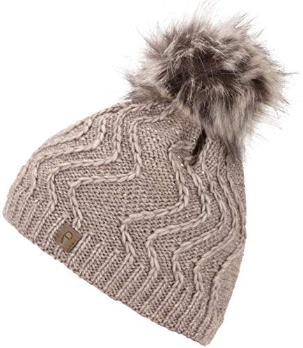 Faera Berretto Invernale Foderato Caldo con Pelliccia Sintetica Berretto con Pompon Fodera in Pile Berretto Invernale Lavorato a Maglia Cappuccio Donna Uomo Taglia Unica, Colore:Beige
