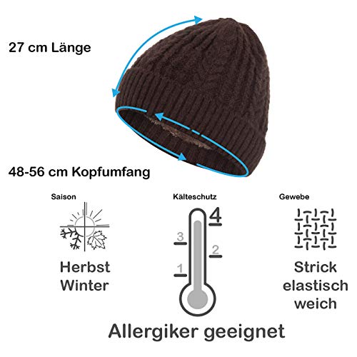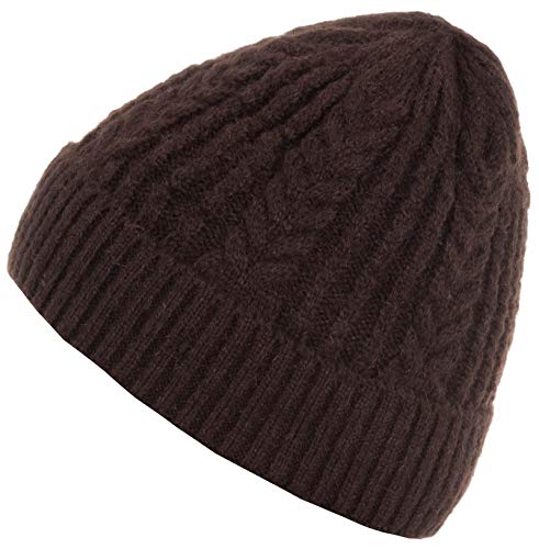 Faera Caldo Berretto Foderato Berretto Invernale Beanie Modello intessuto con soffice Fodera Interna in Pile Donna Uomo One Size, Colore:Marrone