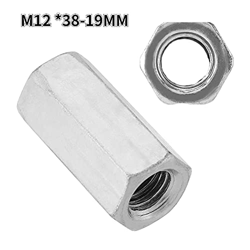 Fafeicy Elementi di fissaggio filettati con testa esagonale esagonale dado esagonale dado a stelo lungo zincato 5 pezzi(M12*38 对边19), Noce