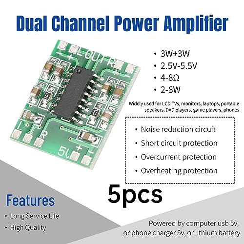 Fafeicy 5 Pezzi Super Small 3W + 3W Tipo D Pam8403 Modulo Amplificatore di Potenza Amplificatore Audio Digitale 2,5 V-5,5 V, Alta Efficienza di Amplificazione