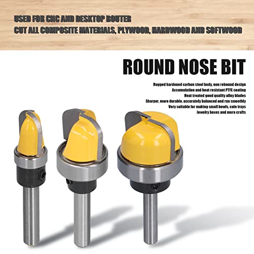 Fafeicy Punta a Punta Tonda, Gambo da 1/4 di Pollice, Punta per Fresa a Forma di Vassoio per Ciotola, Punte per Fresare per Intaglio di Piatti con Cuscinetto(1-1/8 inch + 3/4 inch + 1/2 inch), Fresa