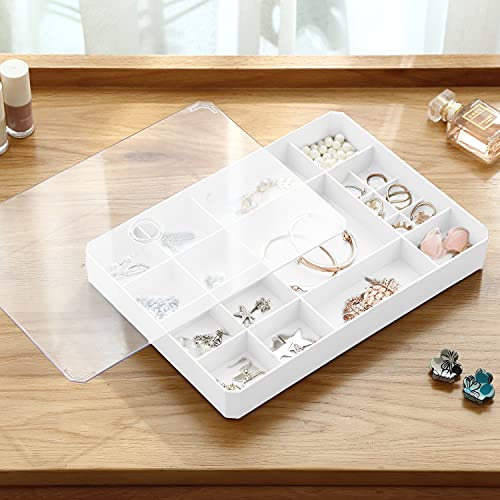 Faffooz Portagioie, plastica Contenitore di gioielli, Vassoio per Gioielli da 19 Griglie, Scatola Portagioie per Donna, Scatole per Gioielli bianca, per Anelli, Collane, Braccialetti