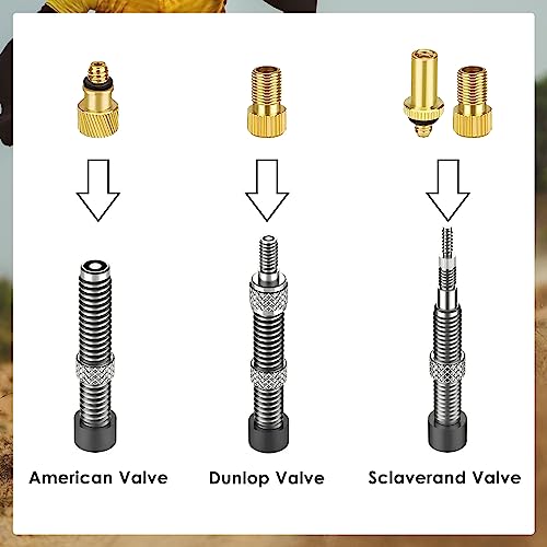 【Materiali di Alta Qualità】- I nostri kit di valvole sono realizzati con materiali di alta qualità per garantire la durata e l'uso a lungo termine. L'ampia gamma si adatta a tutte le valvole più diffuse e comprende adattatori per valvole auto, adattatori per valvole francesi e adattatori per valvole Dunlop.