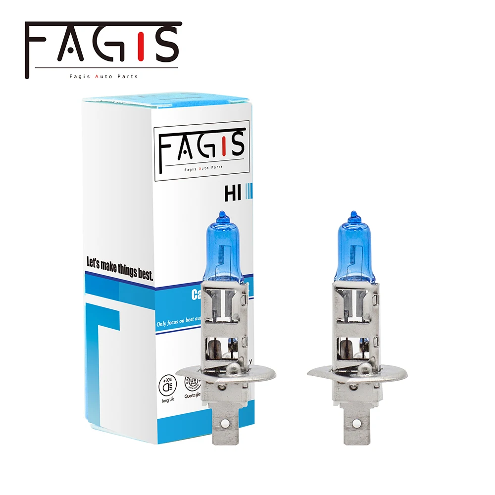 Fagis 2 Pcs H1 12V 55W Blue Car Haedlight Super Bright White UV Quartz Glass Auto Halogen Bulbs Car Lights High Beam Lamps