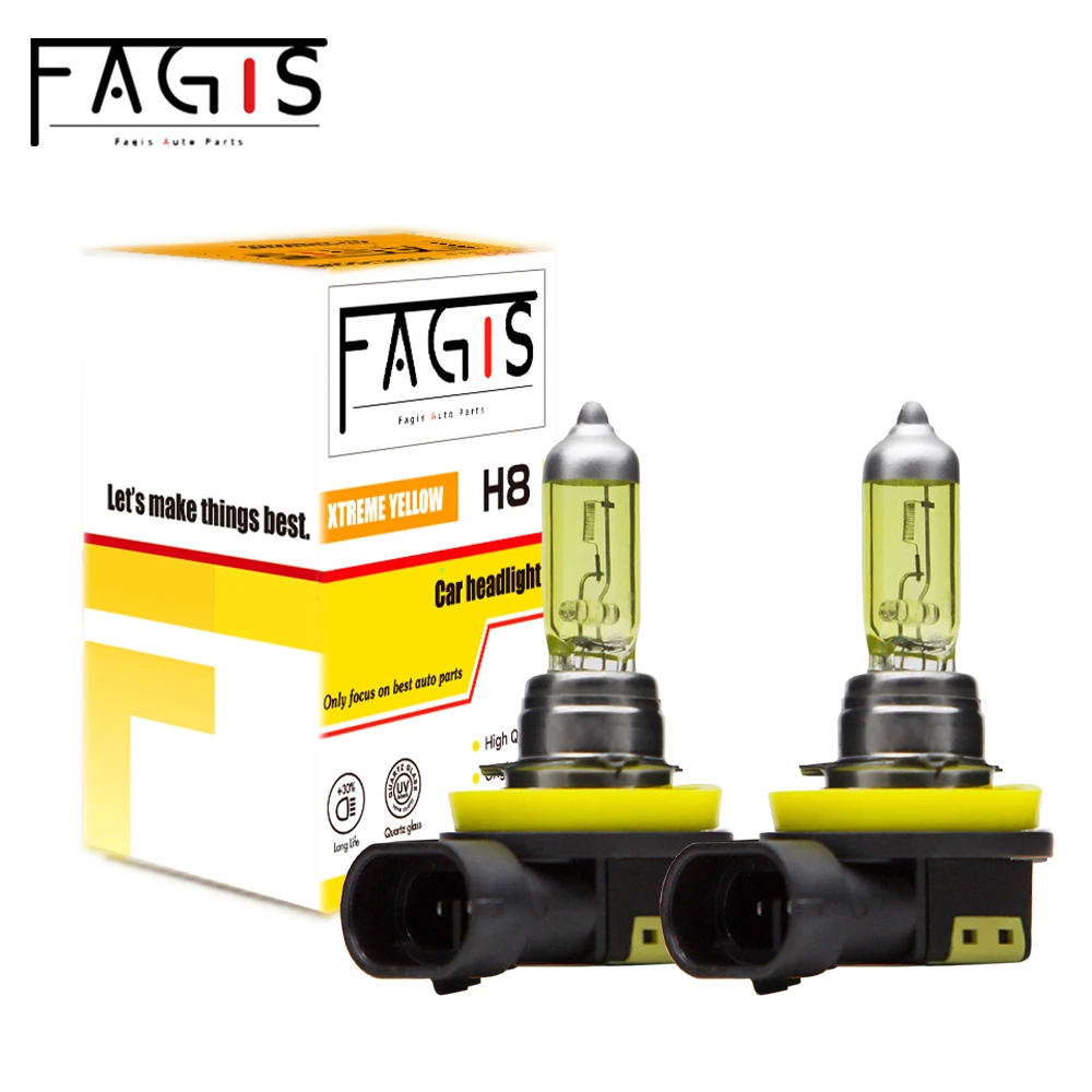 Fagis 2 Pcs H8 12V 35W Yellow Lights Car Headlight Auto Fog Lamps Halogen Bulbs