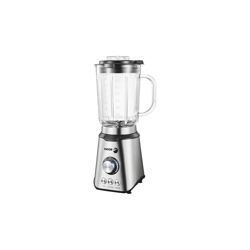 Miscelatore a caraffa coolmix pro master 1.200w fge6012 fagor, capacità 1,75 l, caraffa in vetro graduata, facile da montare con il sistema easyclick, 6 lame in acciaio inox rinforzate e rimovibili, controllo della velocità variabile, 3 programmi: turbo, smoothie, tritare il ghiaccio, facile da pulire, doppio distema di sicurezza nel coperchio e nel bicchiere, corpo in acciaio inox lucido, sistema di sicurezza anti-surriscaldamento, base antiscivolo. misure: ø15x43cm (diametro/altezza)