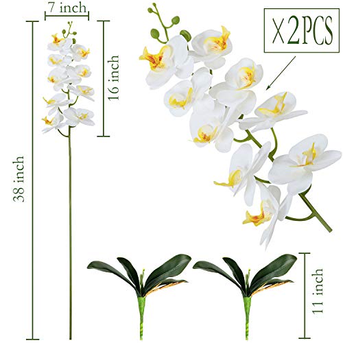 FagusHome 2 Pz Fiori Orchidea Phalaenopsis Fiori Artificiali 100cm con 2 Pz Foglie d'orchidea phalaenopsis Artificiale Fiori Finti (C)