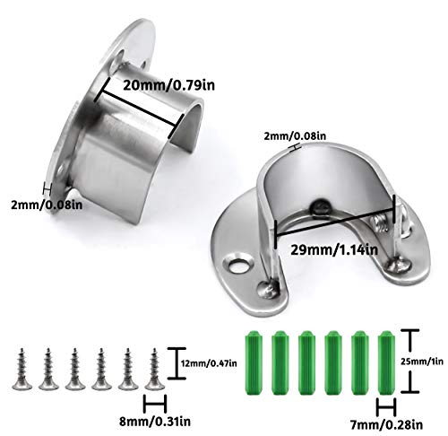 Fahibin Supporto per Asta Armadio in Acciaio Inox, Forma di U Asta Guardaroba con Viti, Adatto per Aste di Sospensione con un Diametro di 29 mm(2 Pezzi)