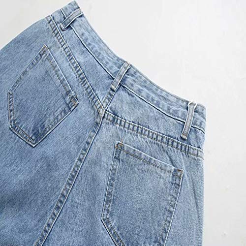 Fainash Jeans a Vita Alta con Micro Pieghe da Donna Retro Lavaggio Allentato Tinta Unita Pantaloni Casual in Denim Regolari per pendolari Tutto-fiammifero semplici M