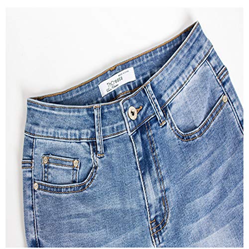 Fainash Jeans Svasati da Donna Ricami Stampati a Vita Alta lavati Pantaloni Casual in Denim Classico Regolare Tutto-fiammifero di Grandi Dimensioni XL