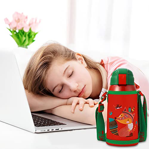 FainFun Custodia Bottiglia, Borsa per Bottiglia d'Acqua con Cerniera, Porta Bottiglia Acqua con Tracolla Regolabile per Bambini Adulti, Borsa per Borraccia per Passeggiate, Escursioni (Volpe)