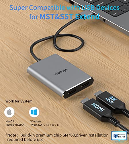 Fairikabe Adattatore USB 3.0 a doppio HDMI 4K 30Hz, USB a HDMI per estensione video Windows/Mac OS, MST Hub USB a doppio adattatore HDMI per 2 monitor compatibile per computer portatile/computer