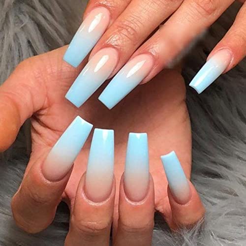 Fairvir Coffin - Unghie finte lunghe e finte sfumate, colore: arancione