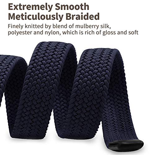 ✔【Materiali grezzi sicuri】: scegliamo le miscele di 60% seta di gelso e 40% poliestere come il tessuto principale della cintura elastica, che è ricco di elasticità e traspirante, ha una sensazione liscia e dimostra la sua qualità distintiva e squisita diversa da altre cinture intrecciate.