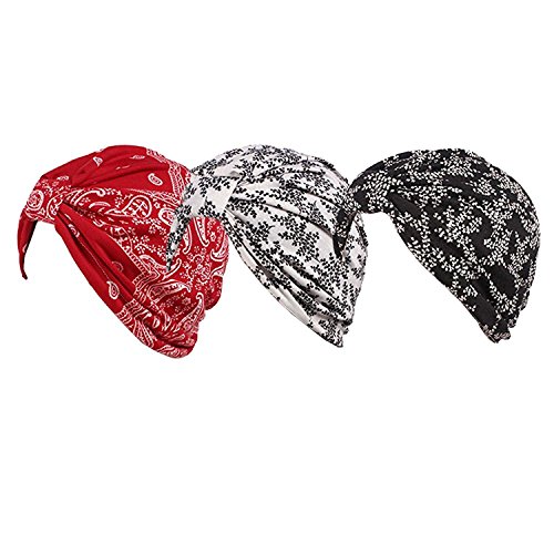Ever Fairy - Cappuccio turbante da donna, in cotone, con stampa floreale, copricapo per tenere i capelli raccolti 3 PCS D Taglia unica