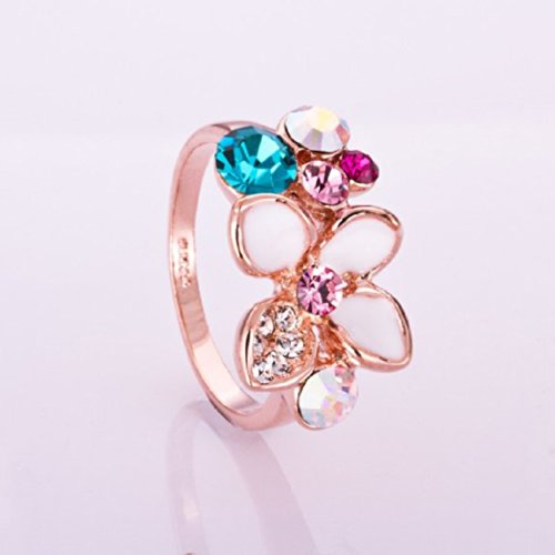 FAIRY COUPLE rose placcato in oro rosa, con cristalli multicolore & R134-Anello con fiore smaltato, colore: bianco
