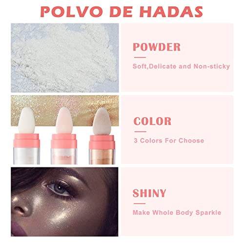 Fairy Highlighter Powder Body Highlighter, Shimmer Face and Body Highlighter Powder with Sponge Head, Natural Sparkle Highlighter Makeup for Lip Face Body Makeup, Waterproof & Long Lasting (White)