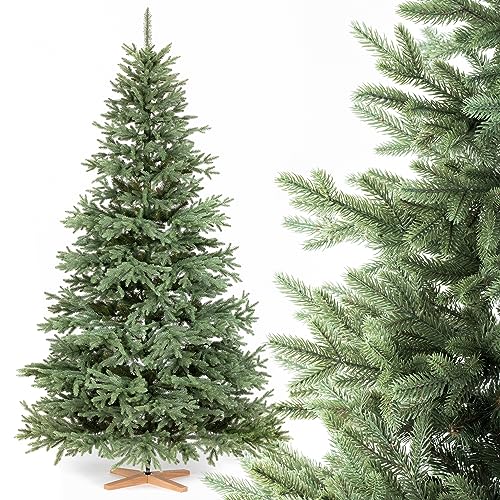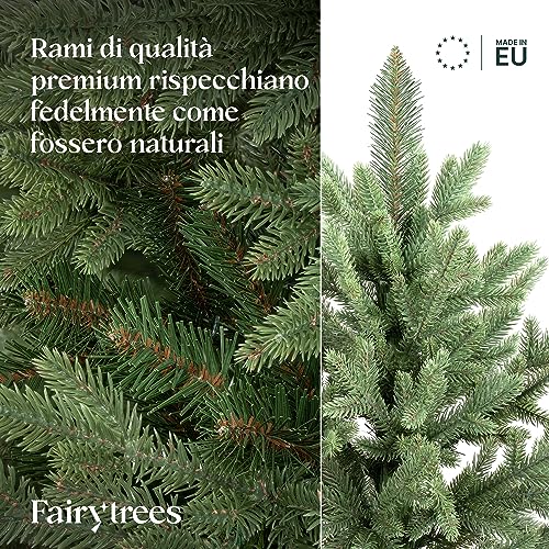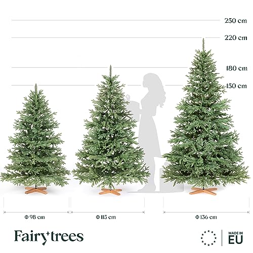 FairyTrees Albero di Natale artificiale Abete alpino Premium, con supporto in legno, 220cm, FT17-220