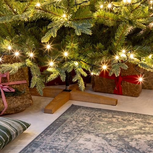 FairyTrees Albero di Natale Artificiale, Abete Nobile Nordmann, con Supporto in Legno, FT25-220