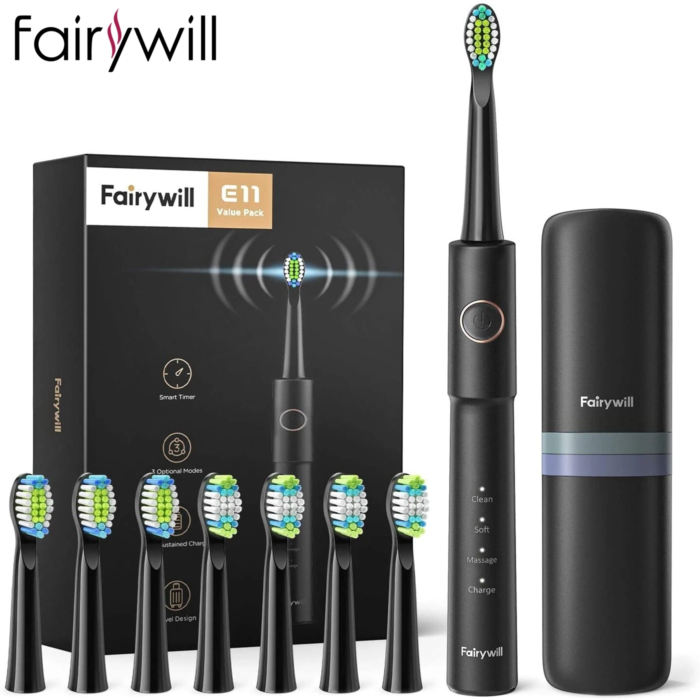 Fairywill Sonic Electric Toothbrush E11 Waterproof USB Charge Rechargeable Electric Toothbrush 8 Brush Replacement Heads Adult
