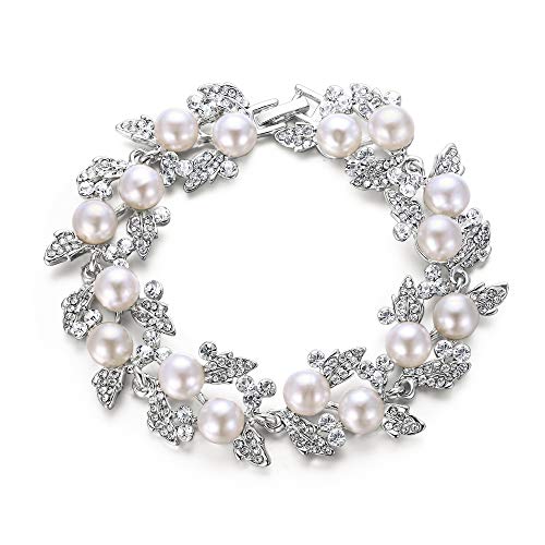 Ever Faith Austriaco di cristallo del Fiore Elegante Perla simulata Braccialetto Nuziale